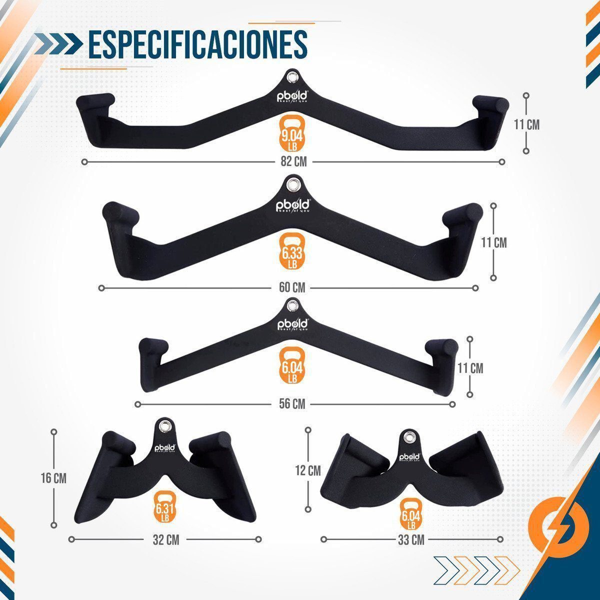 • Entrena con versatilidad: Los agarres PBOLD están diseñados para maximizar el uso de tus máquinas de polea, permitiéndote realizar múltiples ejercicios de fuerza en brazos, espalda, hombros y más.