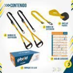• Entrenamiento de cuerpo completo: Las bandas de suspensión te permiten realizar una amplia variedad de ejercicios que trabajan todos los grupos musculares, desde el core hasta las extremidades, mejorando tu fuerza, estabilidad y flexibilidad.