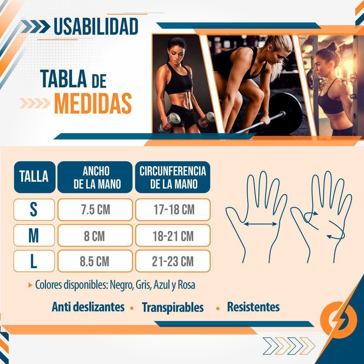 • Agarre antideslizante: Palmas con superficies texturizadas para asegurar un agarre firme en barras y equipos.