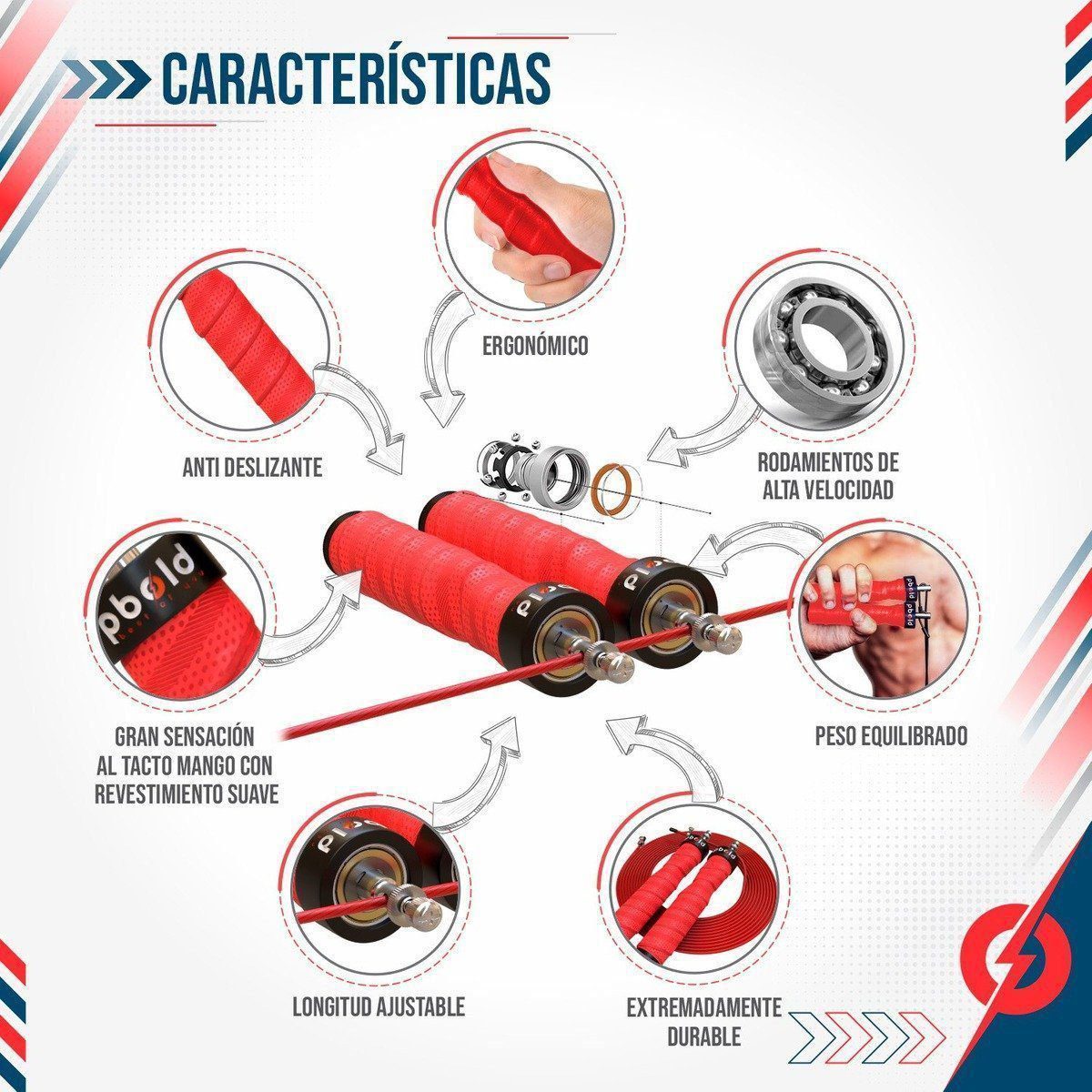 • Mangos ergonómicos y antideslizantes: Proporcionan un agarre seguro y cómodo, incluso durante sesiones de entrenamiento intensas.